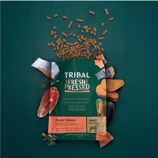 A grain free & natural cold-pressed complete dog food with fresh salmon, green lipped mussel and joint care, specially developed for adult dogs.